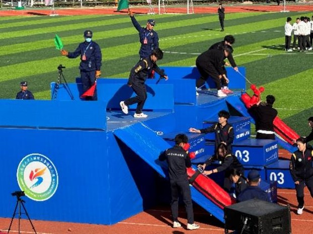本届大赛由山东省教育厅、山东省消防救援总队联合主办,以“消防青春志,安全家国行”为主题,赛事设置紧密贴近实战,竞争尤为激烈。大赛设置了“火场零距离”、“迷宫逃生”、“穿越火线”、“勇者同行”等七个连贯的竞赛科目,全长119米的赛道不仅是对参赛选手速度的考验,更是对其消防安全知识、应急处置能力、团队协作精神及心理身体素质的全面综合较量。