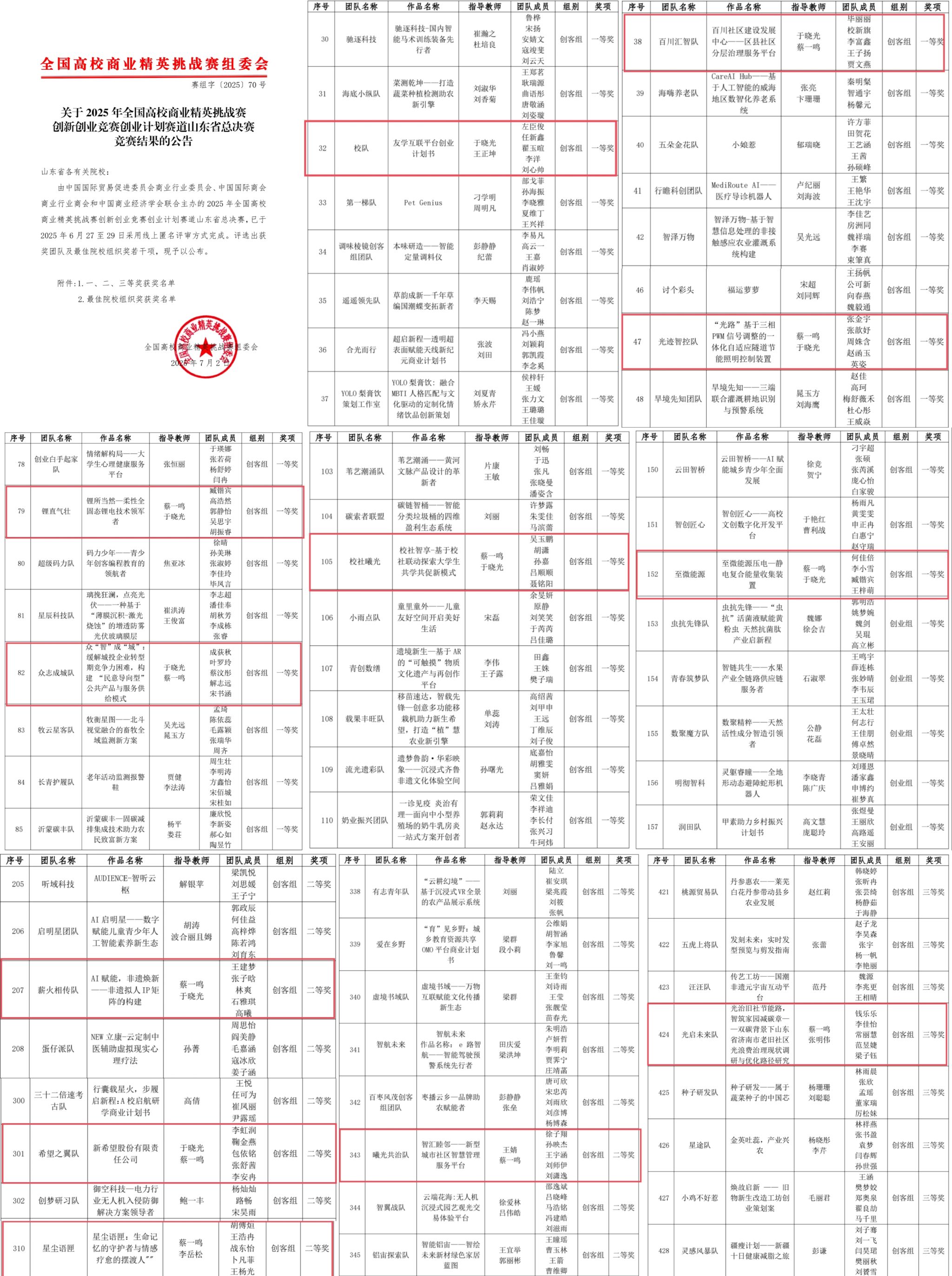 11月16日,教育部A类赛事全国高校商业精英挑战赛创新创业竞赛创业计划赛道及创业模拟赛道全国总决赛在济南圆满落幕。我校政治与公共管理学院的多个项目从众多参赛队伍中脱颖而出,两个团队获得国赛一等奖,充分展现了我校学子在创新创业与技术实践领域的卓越风采。
