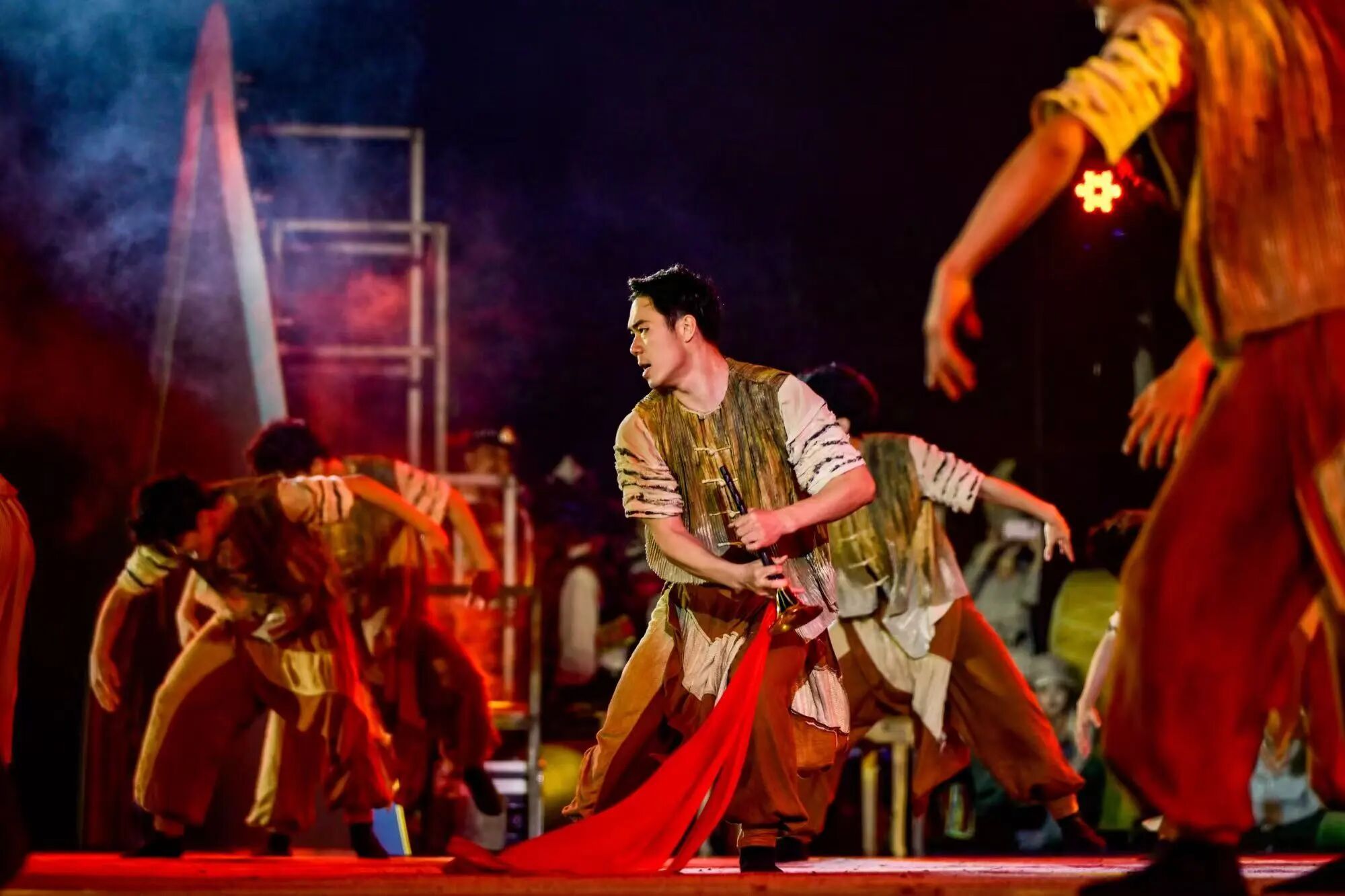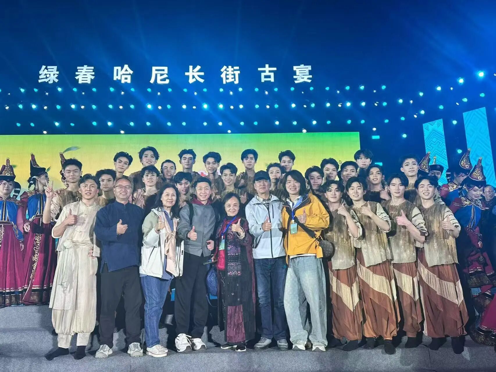 展演期间,学校师生团队还受邀参与哈尼十月年长街古宴游行活动,以大学生代表队第一方阵的身份亮相,现场展示山东传统鼓子秧歌特色伞组合。演员们以刚劲豪放的舞姿、整齐划一的编排,生动再现了这一民间舞蹈的艺术精髓,引发当地群众的热烈反响,掌声与欢呼声贯穿游行全程,成为鲁滇民族文化交流的鲜活场景。