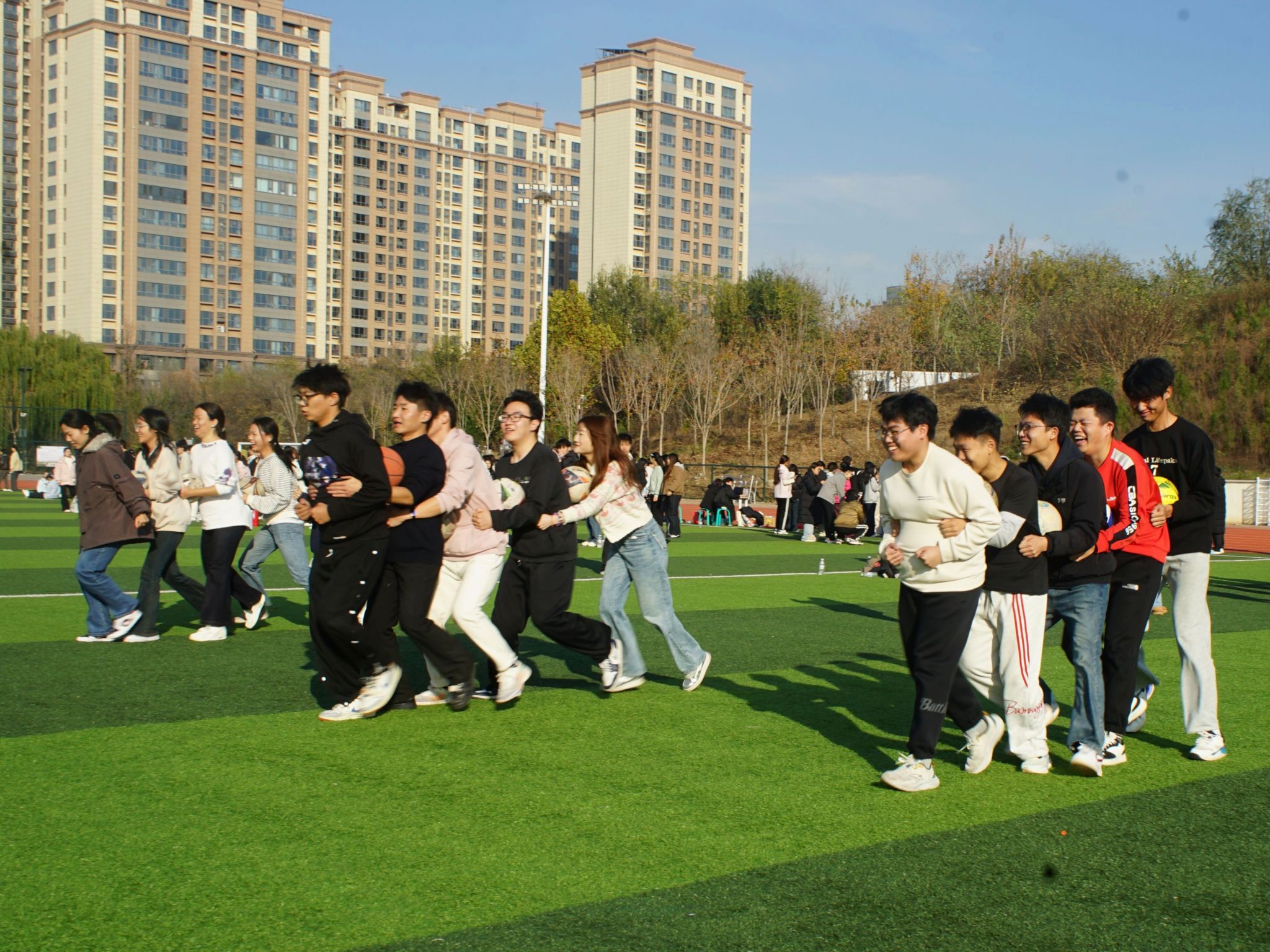 为扎实推进“一站式”学生社区建设,践行“五育并举”育人理念,打造安全、文明、和谐、有序的“平安型”社区,11月20日下午,学校在西运动场举办2025年学生社区安全趣味运动会。学生工作处、安全管理处相关同志,各学院辅导员及学生代表1000余人参加活动。