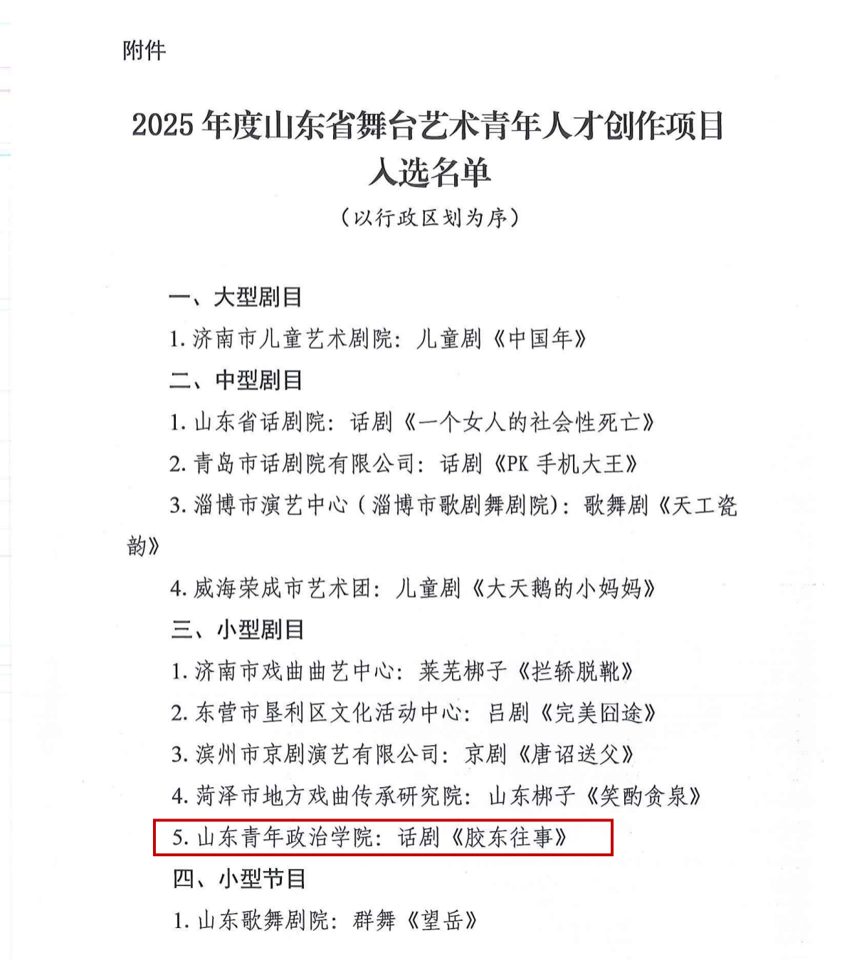 11月25日,山东省文化和旅游厅公布了2025年度山东省舞台艺术青年人才创作项目立项名单,由学校文化传播学院教师李方星创作的红色历史题材话剧《胶东往事》成功获批立项。
