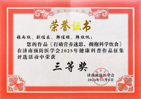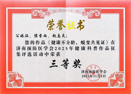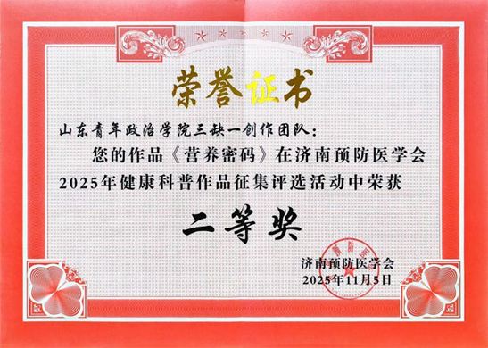 近日,济南预防医学会正式公布2025年健康科普作品征集评选活动获奖名单。我校后勤管理处与文化传播学院联合指导的三部参赛作品凭借过硬质量脱颖而出,成功斩获二等奖1项、三等奖2项,以专业实力彰显了学校健康科普育人的扎实成效,更践行了服务社会健康发展的责任担当。