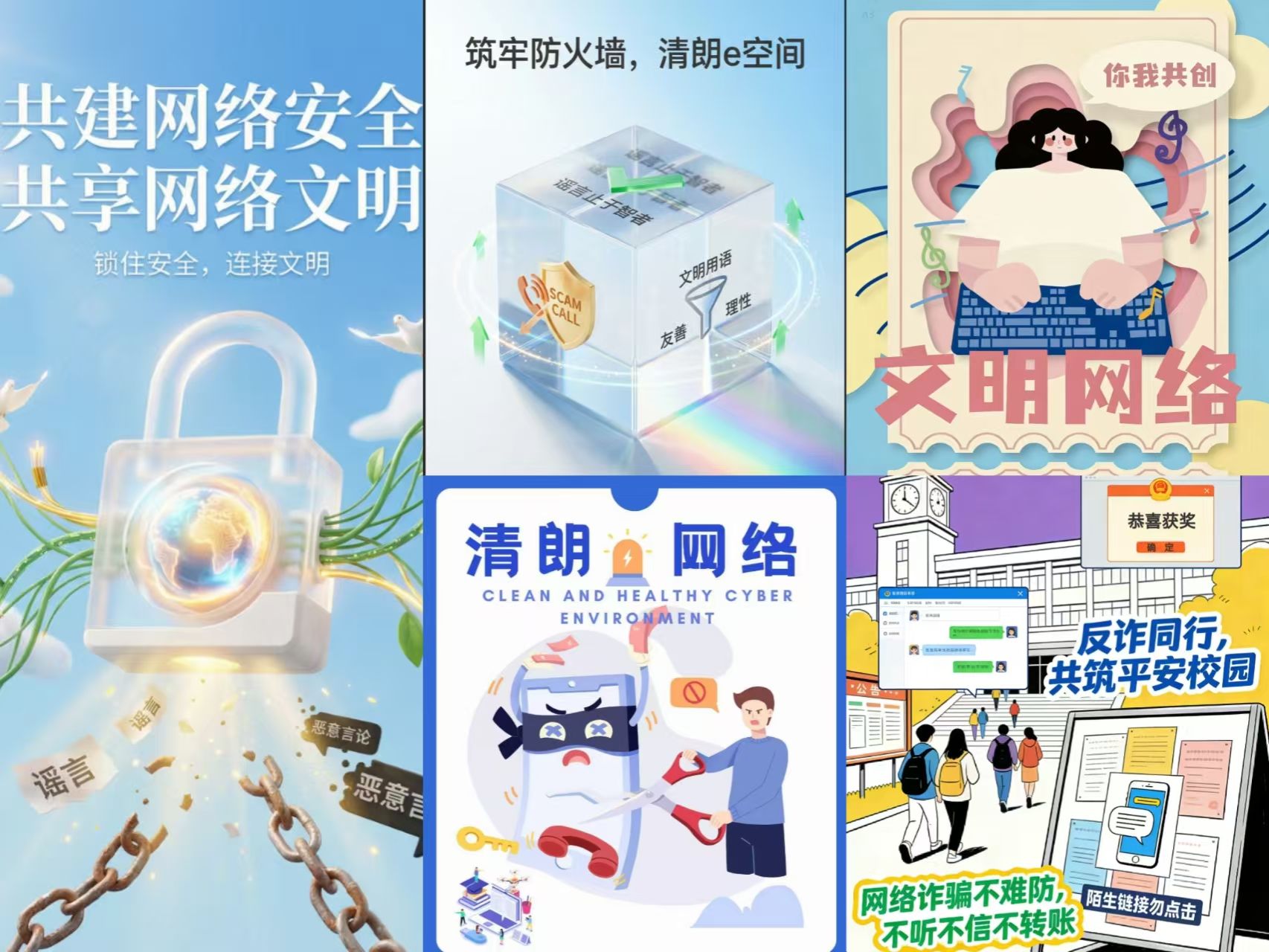 学院创新载体形式,激发创造活力。举办“绘清朗网络,筑文明校园”主题海报设计比赛,鼓励学生积极投身创作,以青年视角观察网络空间、以设计语言传递正向价值。帮助青年学生在艺术创作中深化了对网络文明的理解与认同,将抽象的行为规范转化为鲜活的视觉语言,激发自身艺术创作热情,提升自身艺术表达能力,有效推进美育浸润与思想引领的深度融合,着力实现网络文明理念“看得见、记得住、传得开”。