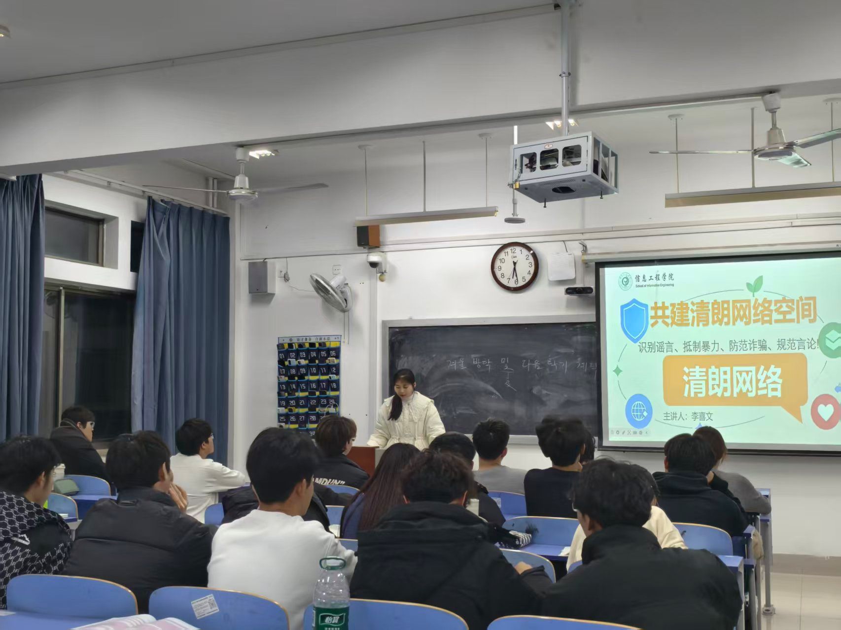 学院立足日常教育,注重浸润引导。组织各班级、团支部围绕“识别与抵制网络谣言”、“防范新型网络诈骗”、“拒绝网络暴力”、“规范网络言论表达”等主题全面铺开网络文明主题教育活动。面向“青马班”学员、学生会融媒体中心全体成员开展系统培训,通过引入社会热点案例进行剖析警示、组织观看专题教育片分享心得感悟等形式,有效推动了外在的网络行为规范逐步内化为学生内在的价值认同与自觉遵循,不断增强学生的法治意识、辨别能力和自我保护技能,积极营造“文明上网光荣、安全用网尽责”的浓厚氛围。
