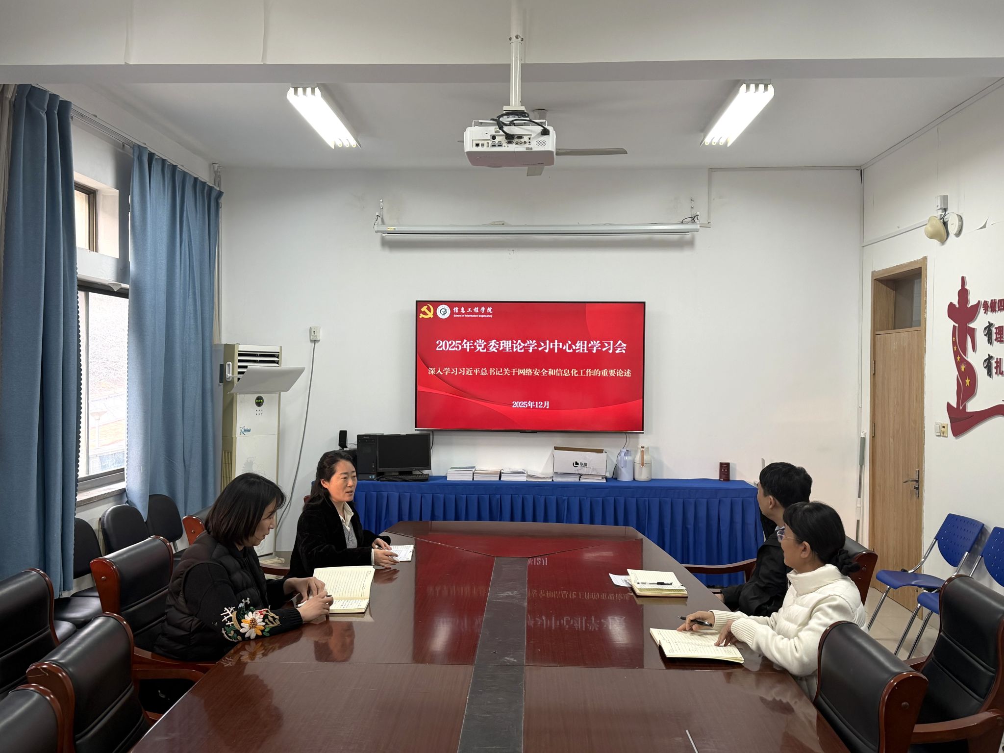 学院坚持高位引领,强化理论武装。党委理论学习中心组系统学习习近平总书记关于网络安全和信息化工作的重要论述,深入研讨新时代网信工作的战略意义、使命任务与实践路径,强调要全面系统学习掌握新时代网信工作的规律方法,坚持不懈用习近平总书记关于网络强国的重要思想武装头脑、指导实践、推动工作。组织开展教职工政治理论学习,及时跟进学习习近平总书记在中共中央政治局第二十三次集体学习时的重要讲话精神,号召全体教师主动把握人工智能等新一代信息技术发展机遇,紧密结合学院专业属性和学科特点,将网络强国思想深度融入立德树人全过程,为学院事业高质量发展提供持续助力和坚强保障。