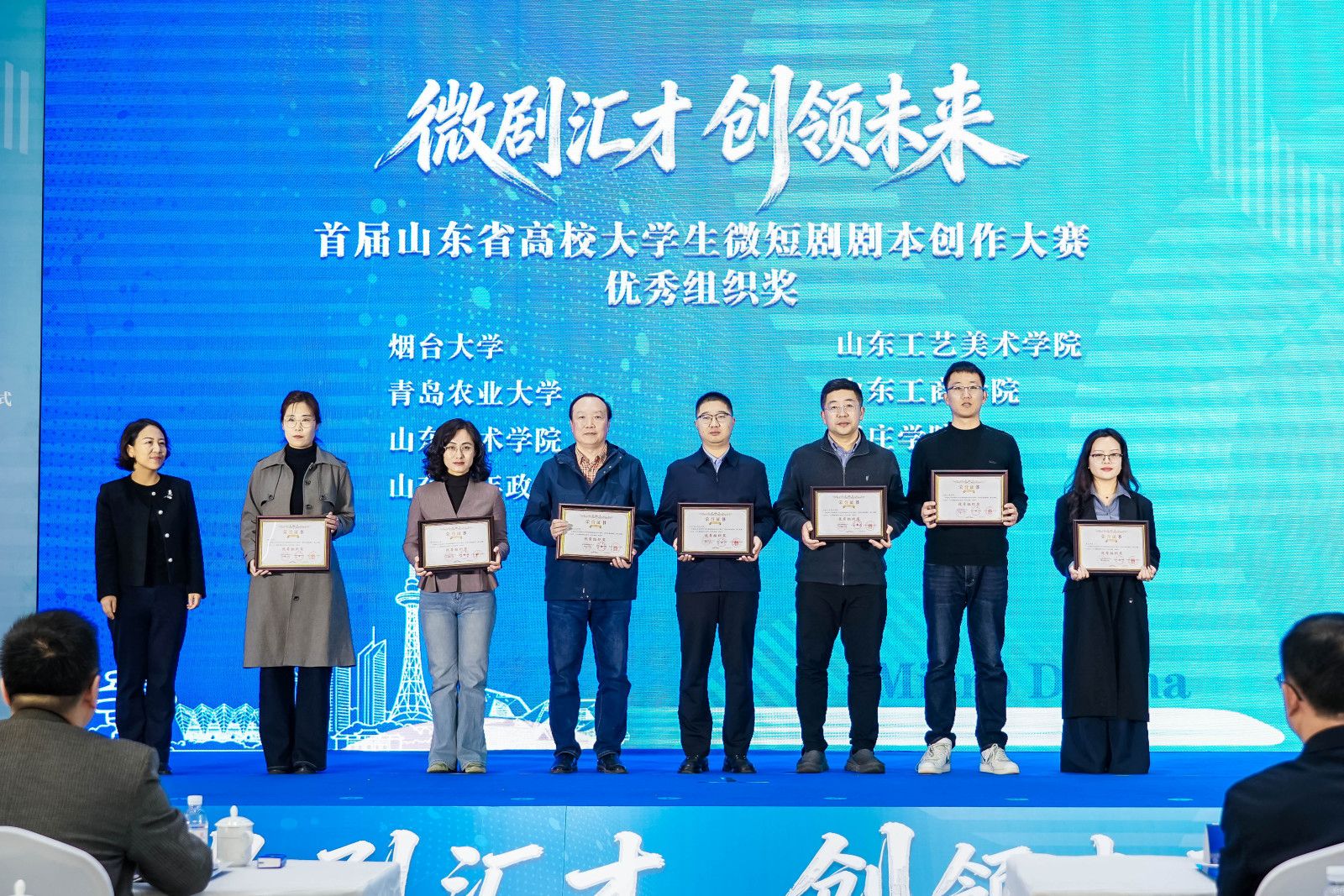 3月27日,首届山东省高校大学生微短剧剧本创作大赛在浪潮青岛大数据产业园圆满落幕,学校荣获“优秀组织奖”,推荐作品获大赛二等奖1项、优秀奖1项。