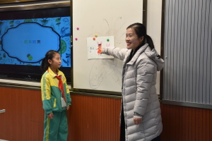 在美术教师的引领下,课堂全程进行顺利,小朋友们积极参与、认真思考,活跃的课堂氛围让参与体验的青年艺术帮成员们感同身受、印象深刻。课后,教导主任康娟为青年艺术帮的成员们结合课例进行了课堂教学培训,以“基于小学生的教学策略”为主题,用“如何与陌生学生沟通”“初步认识小学美术”“教师如何上好课”“结合课例谈教学”等四个方面,并结合自身的教学意识与教学方法讲述了如何使美术课堂更加高效完美,并着重强调了“教学是一门艺术,教无定法”的观念。