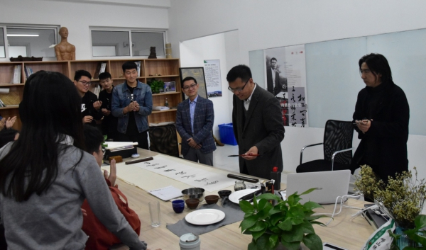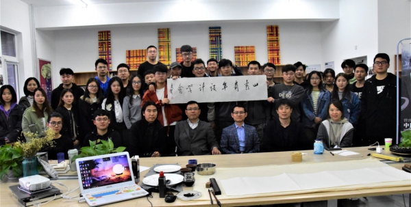 现场交流,进一步开阔了同学们的视野,对提升专业学习兴趣起到了积极作用。最后,曾庆贤院长现场挥墨,为设计艺术学院及部分师生题字,通过书画传达了对设计艺术学院的美好祝愿。