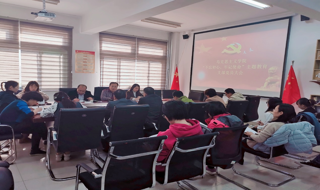 11月7日下午,为扎实推进“不忘初心、牢记使命”主题教育,马克思主义学院直属党支部依照主题教育学习计划,召开支部党员大会。学院全体教师参加。