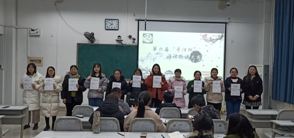 为贯彻落实习近平总书记“让中华文化展现出永久魅力和时代风采”的重要指示,在校内形成文化传播与传承的良好氛围,提高广大青年学生学习传统文化的热情,深入体味中华民族的思想内蕴与文化内涵。12月23日,传统美韵协会在笃行楼103教室成功举办第六届“青传杯”诗词歌赋大赛,参赛人员及学生代表参与本次活动。