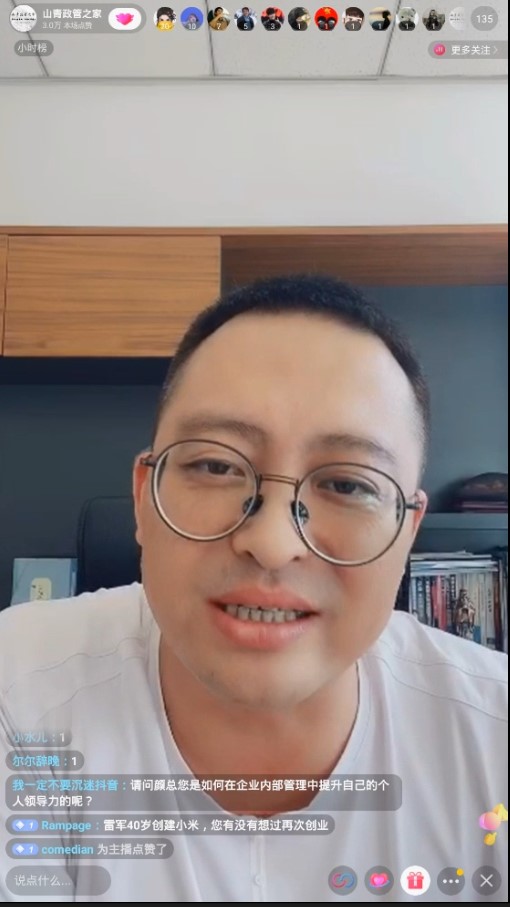 8月25日下午,政治与公共管理学院通过“山青政管之家”抖音直播平台举办青年领导力学位班第八期“青秀讲堂”。青年领导力学位班“青年成长导师”、烟台甘肃商会执行会长、烟台律动网络科技有限公司总经理、山东省优秀创业导师颜鲁恒应邀做了题为《未来已来——我的十八年创业故事》的专题讲座。青年领导力学位班运营团队全体成员、青年领导力学位班全体学员和政管学院部分学生参加了本次活动。讲座由青年领导力学位班运营团队队长、政管学院党总支副书记王正坤主持。