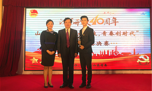 近日,由共青团山东省委主办的全省“思想大解放,青春创时代”演讲比赛决赛在济南举行,团省委副书记李子元出席活动并为获奖者颁奖。我校文化传播学院2017级于特浩同学作为全省唯一一名入围决赛阶段的高校选手,荣获三等奖。