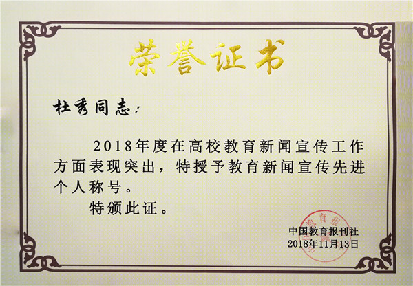 日前,中国教育报山东高校新闻宣传通联会议在济南召开。中国教育报副总编辑张圣华,省委教育工委委员、省教育厅副厅长白皓出席会议。会议表彰了2018年高校教育新闻宣传工作先进单位及先进个人,我校喜获“高校教育新闻宣传先进单位”荣誉称号,党委宣传部部长杜秀荣获“教育新闻宣传先进个人”荣誉称号。
