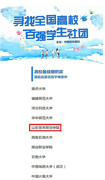 日前,由中国青年报社主办的“寻找全国高校百强学生社团”活动落下帷幕,我校荣获“高校最佳组织奖”。