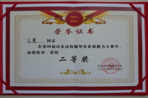 5月11日至14日,山东省第四届高校辅导员素质能力大赛在济南举行。大赛由山东省委教育工委、教育部高校辅导员培训和研修基地(山东大学)主办,山东高校辅导员工作研究及培训基地(山东建筑大学)承办,山东管理学院协办,共有131名辅导员参加决赛,470余名辅导员代表全程观摩,创历届人数之最。我校会计学院辅导员王慧代表学校参赛并荣获二等奖。