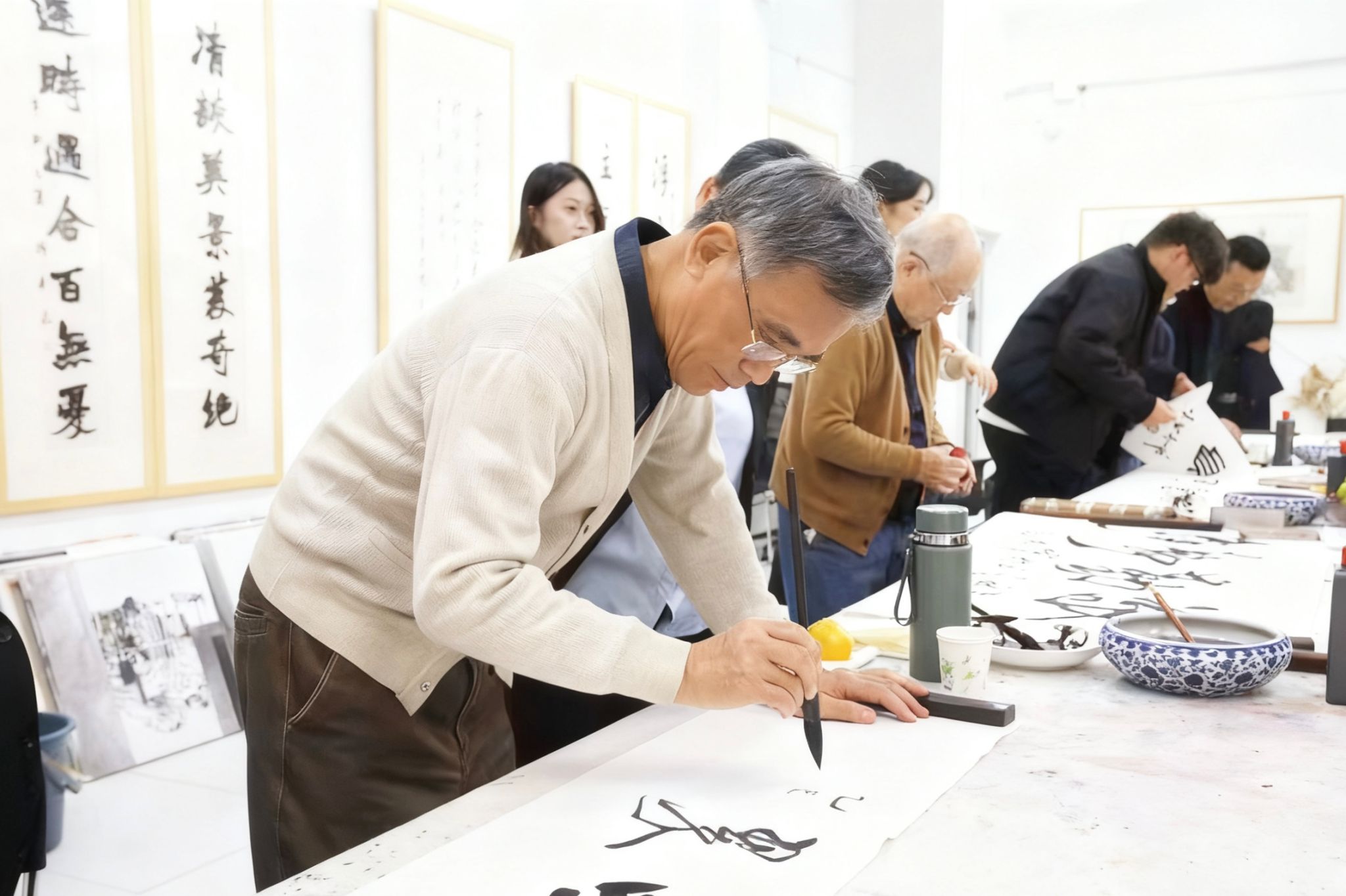 开幕式结束后,辛杰校长亲切接见了书画艺术家。参展书画家同与会领导共同参观了作品展,并与青年师生进行了书画创作笔会。在资深书画艺术家和青年师生的双向互动中,专业技艺得到传递,思想根基更加筑牢,有效构建了文化艺术传承与思想引领并行的育人课堂。