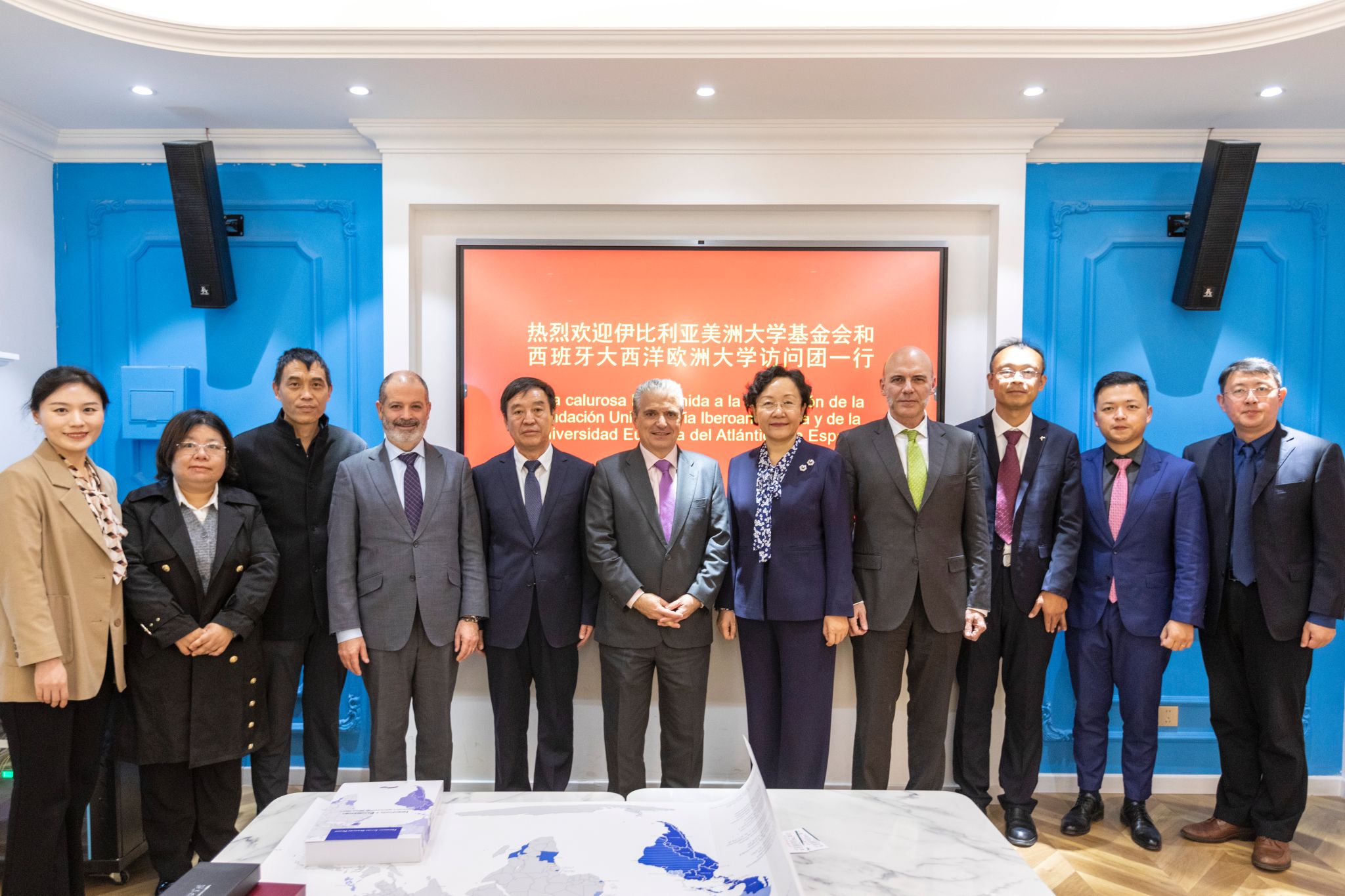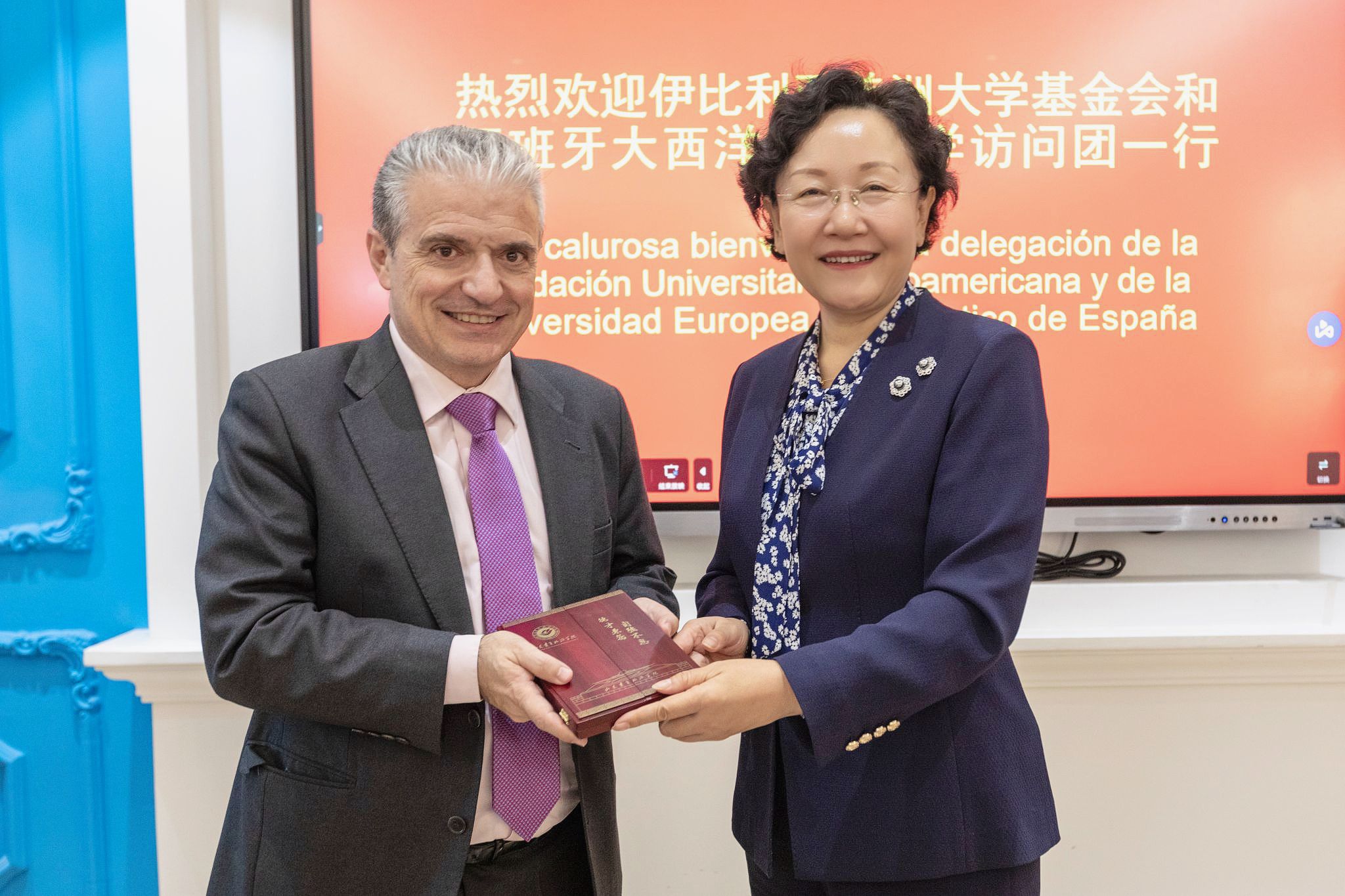 Gracia Villar Santos和Rubén Calderón Iglesias对学校热情接待表示感谢,分别介绍了伊比利亚美洲基金会和大西洋欧洲大学基本情况与中国高校的合作愿景。