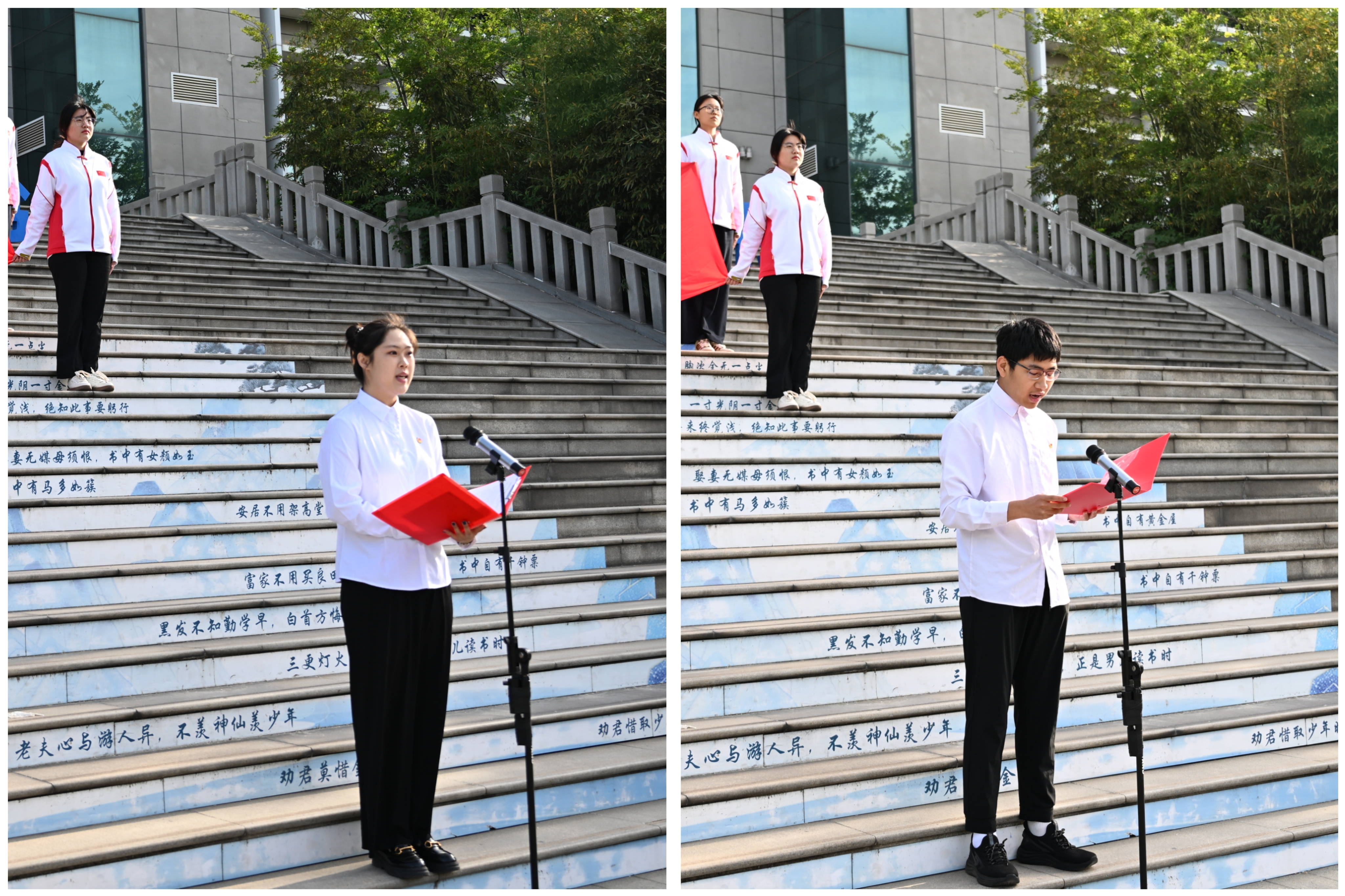 优秀共青团员、马克思主义学院学生代洁带领全体新团员面向团旗庄严宣誓,铿锵誓言响彻广场,生动诠释了新团员听党话、跟党走,立志报国、服务人民的坚定决心。